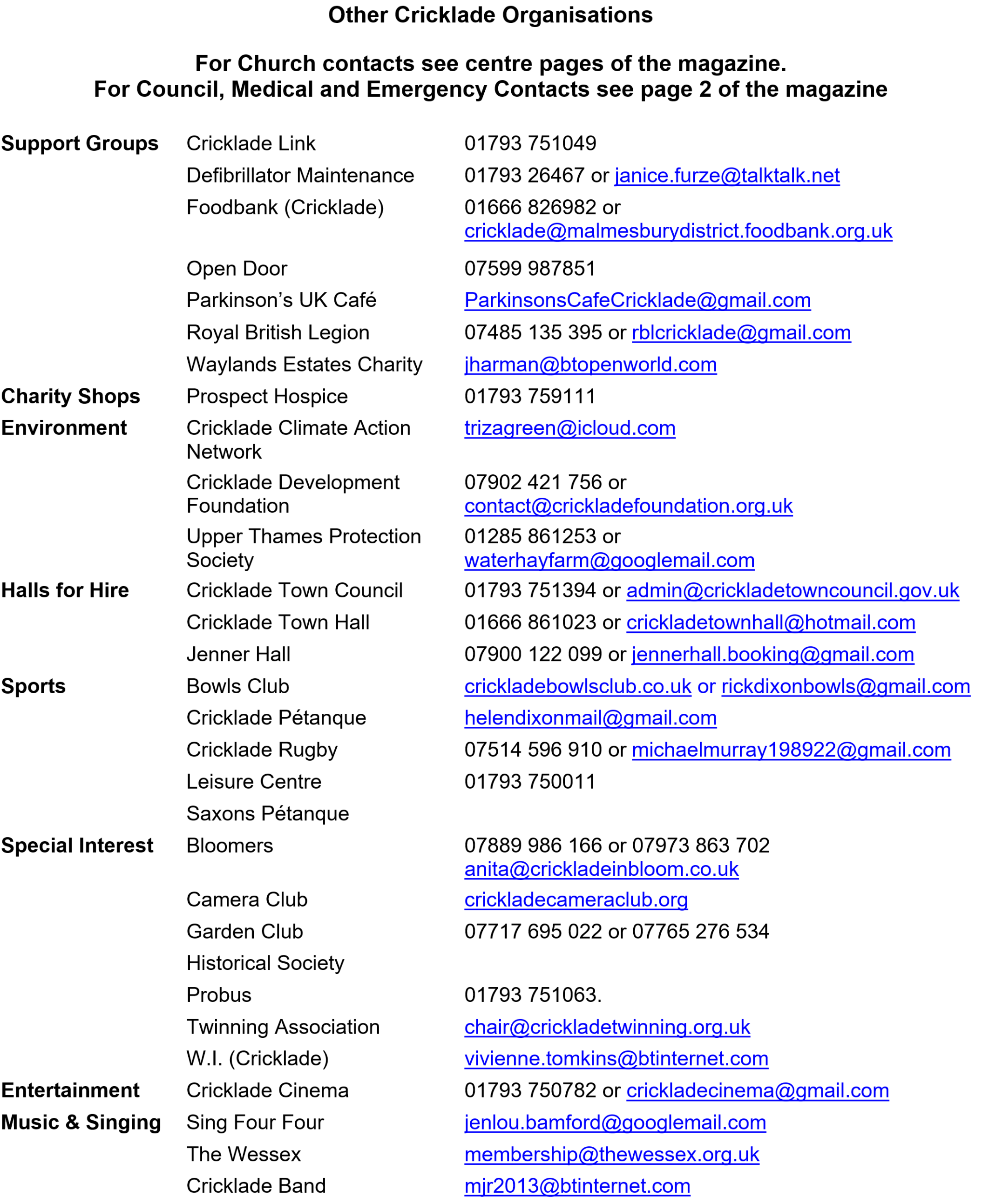 For Church contacts see centre pages of the magazine.